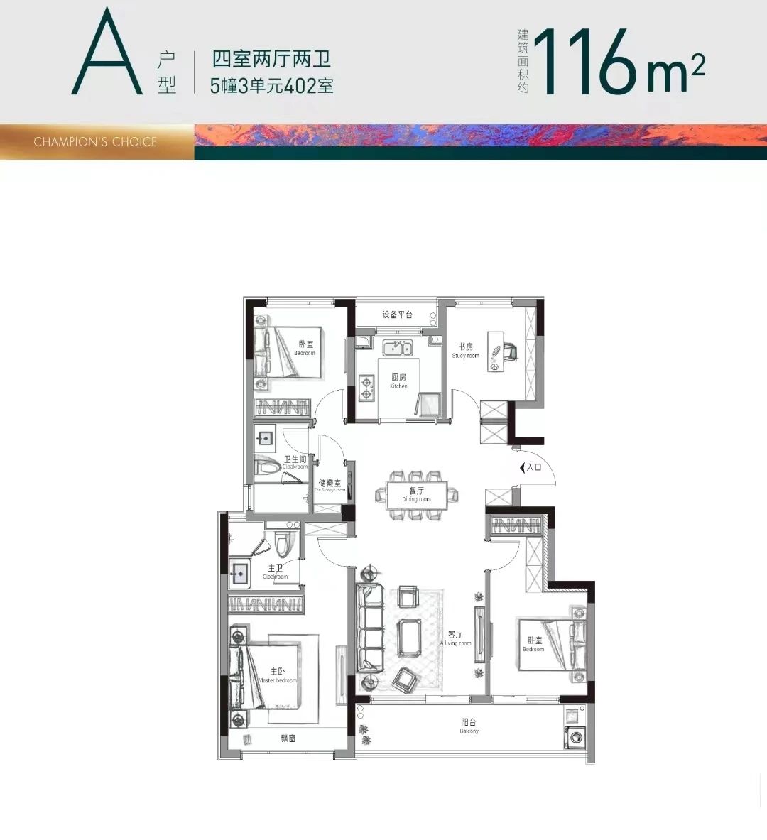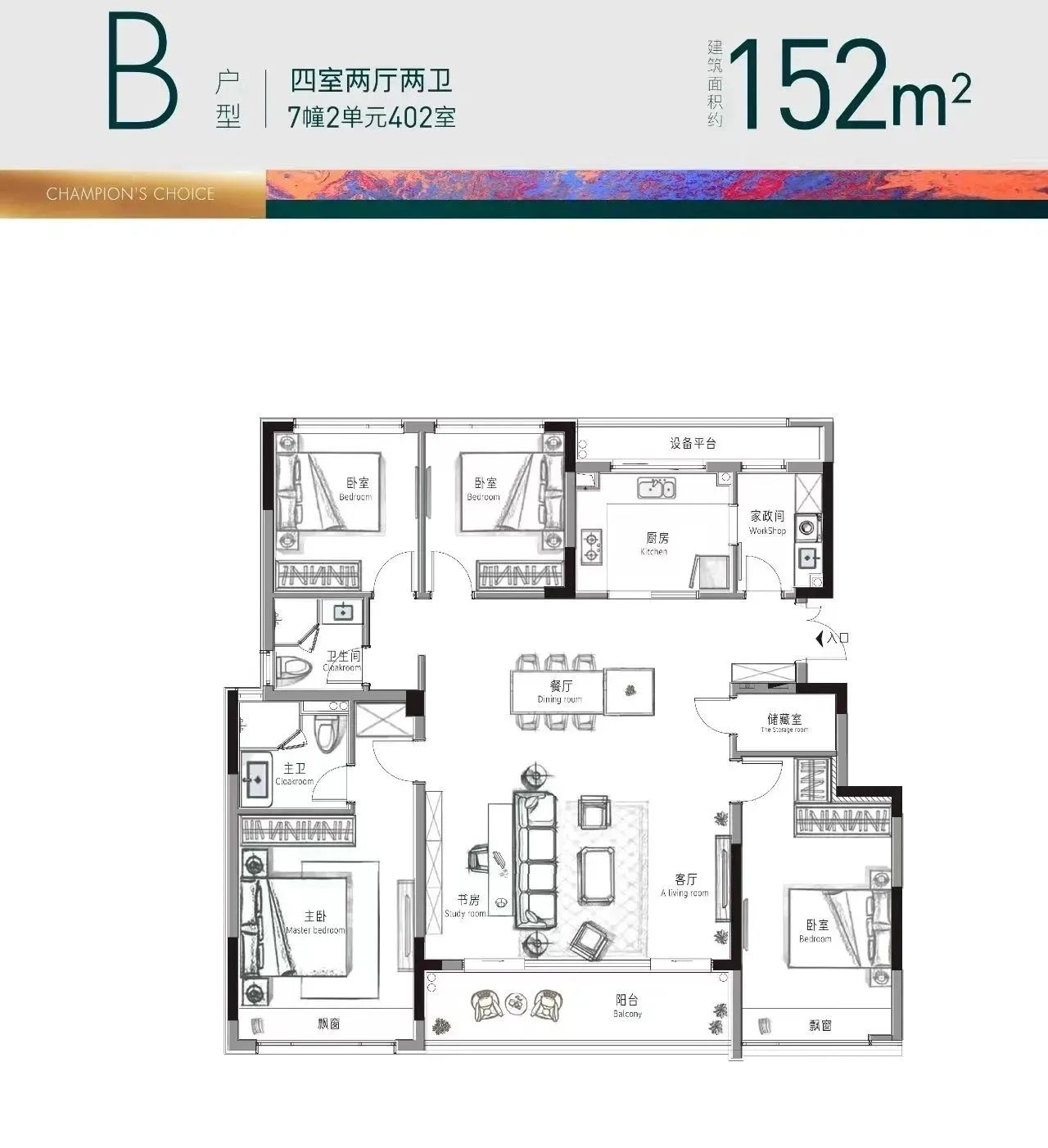 星创杭启云珹府在户型设计上展现了极大的诚意和匠心。项目提供了多种户型,包括106平方米的三房、116平方米的四房、129平方米的四房以及152平方米的4+1房。这些户型不仅面积段覆盖广泛,而且在空间利用上做到了极致。特别是152平方米的4+1房户型,其南向总面宽达到了约13.2米,客餐厅尺度更是达到了约6.3米×7.4米,面积足有约46平方米,堪比一些200平方米户型的客厅。此外,该户型还设计了西厨岛台,餐厅可摆放一张大圆桌,宽景阳台则可放置茶桌藤椅,为业主提供了举办大型聚会的绝佳场所。