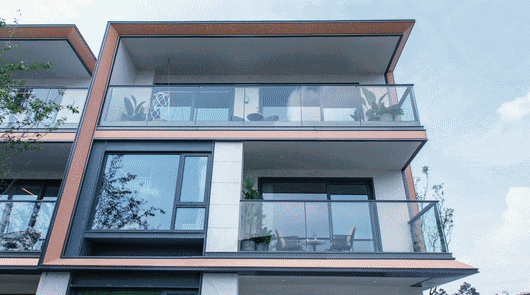 现代台墅采用玻璃幕墙 + 铝板干挂,极简风格与自然环境和谐共生。
